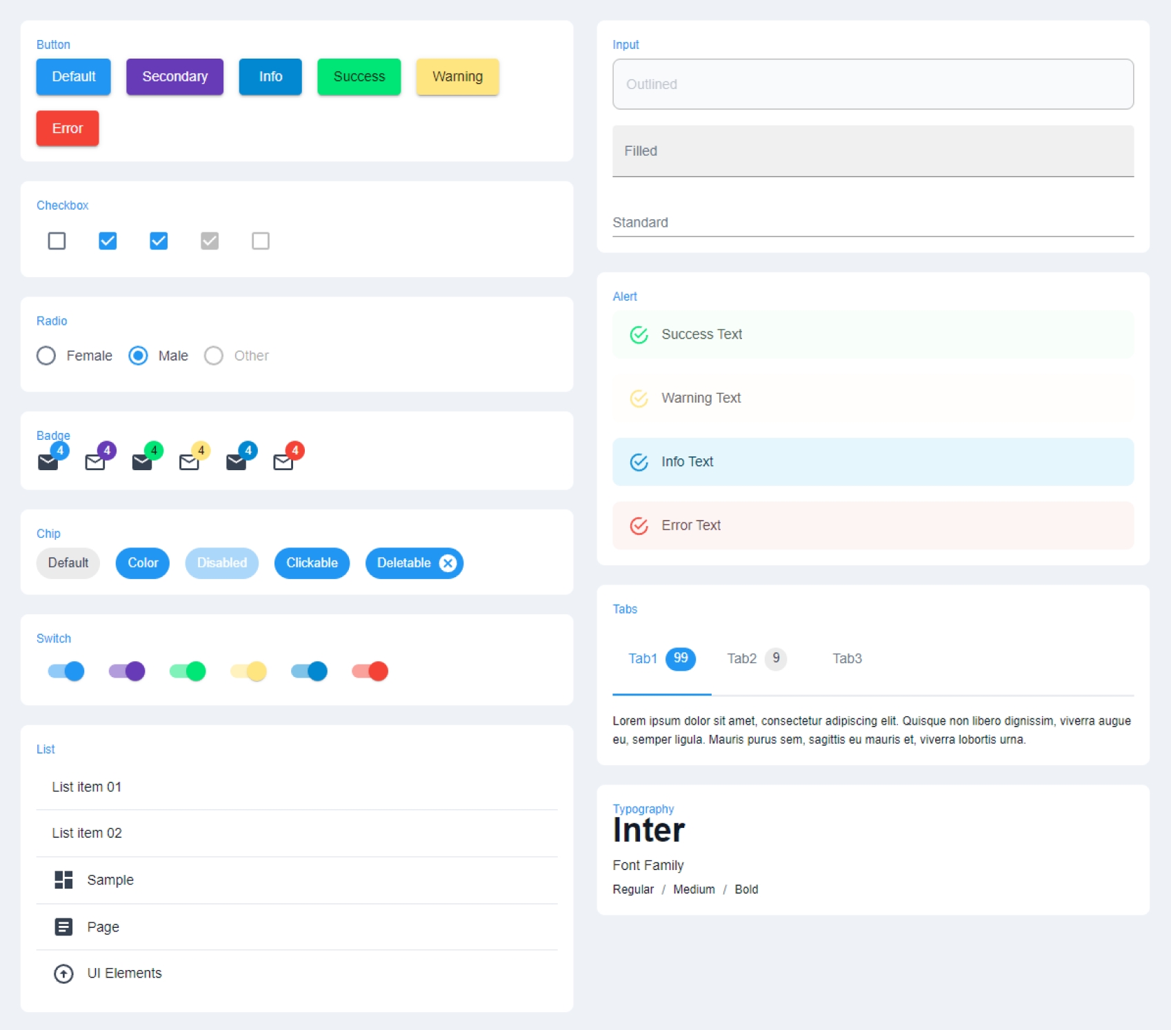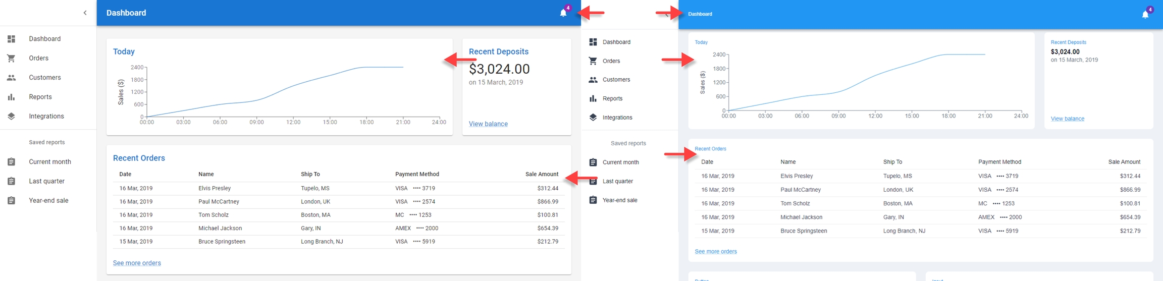 You can see that the app bar and a few other changes have been visible there. We have also added some additional components on the main page to showcase the Mantis theme on those components.
