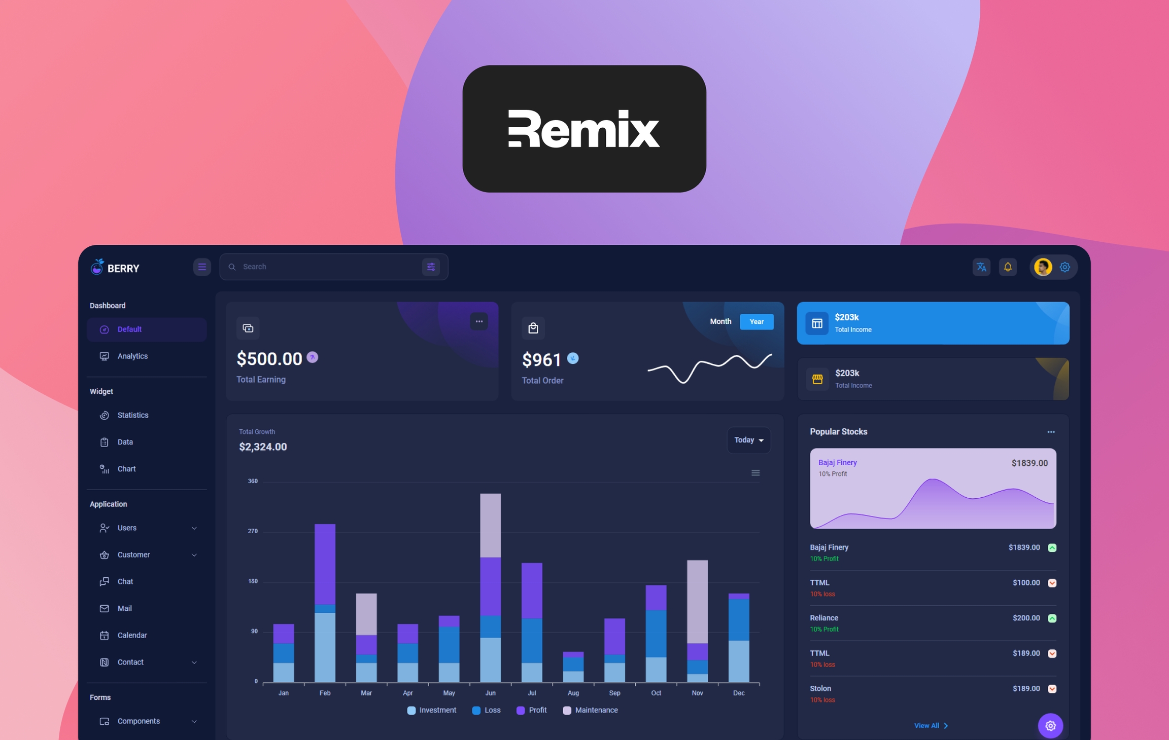 We're thrilled to announce that the React Remix version of our beloved Berry Dashboard Template is now available! With Remix, users can focus on crafting beautiful UIs and let the web standards take care of the rest, delivering a fast and resilient user experience.