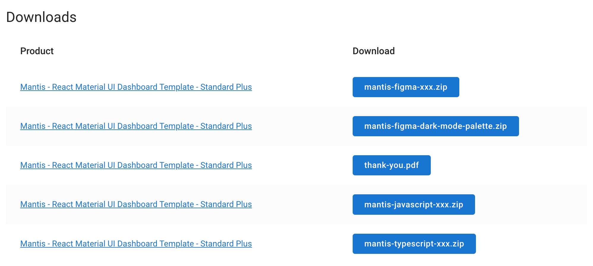 Summary of each license packages.